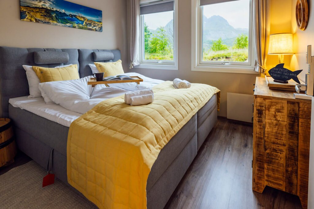 Our accommodation for this tour is the beautifully presented and homely Lofoten Planet Boutique Hotel in Sørvågen near Reine complete with lake views.