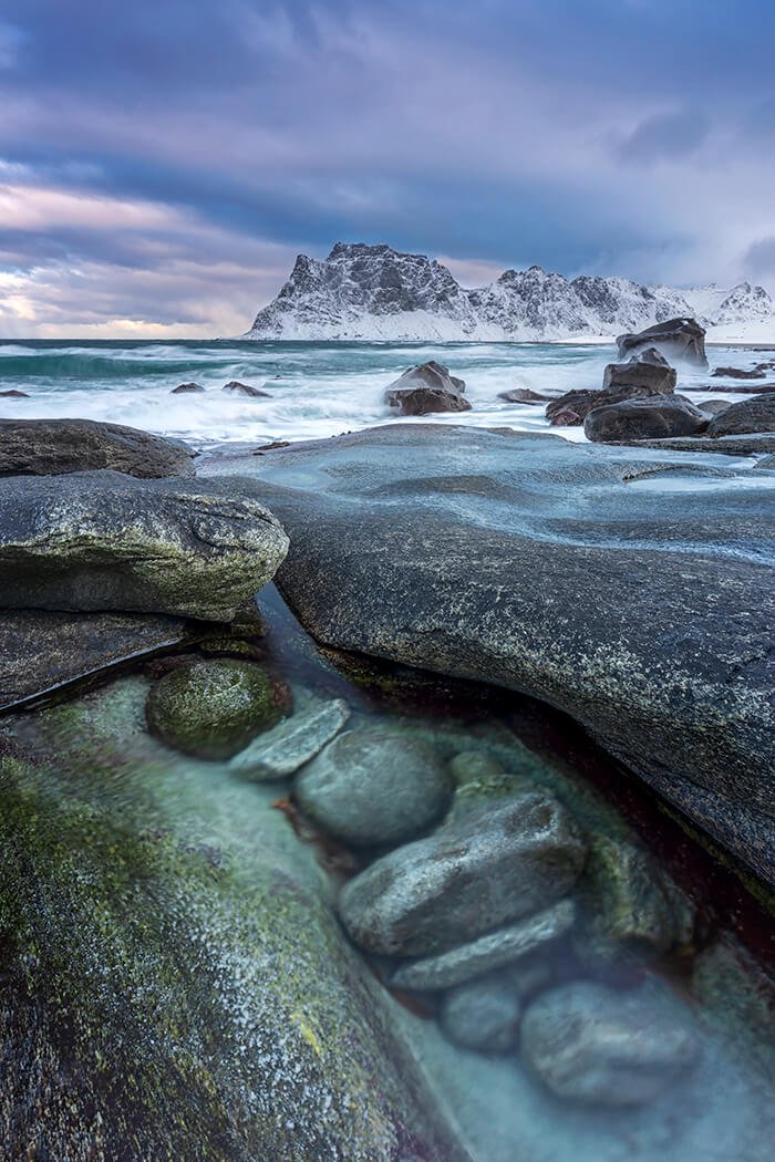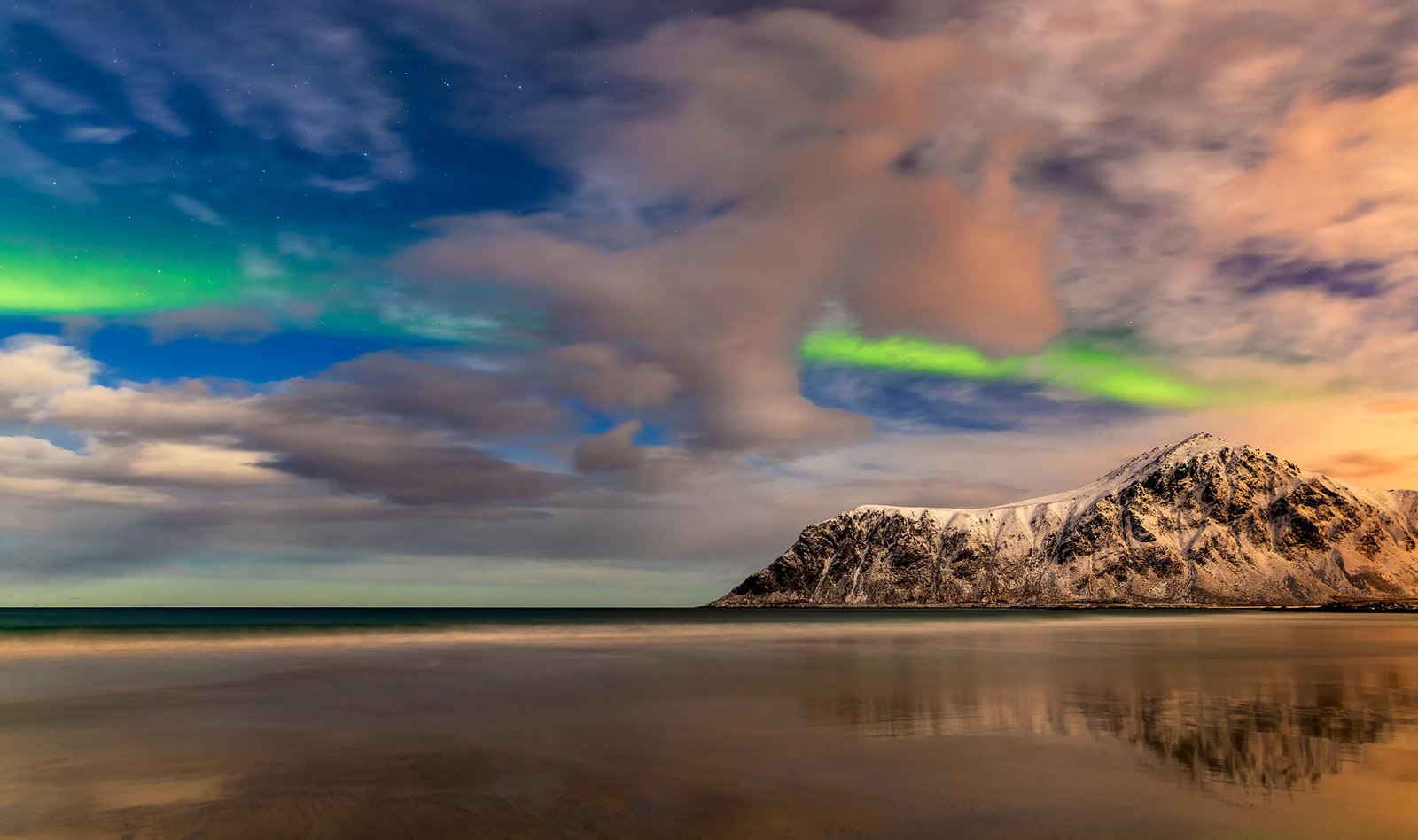 January's unique lighting conditions make this the ideal time for landscape photography in Lofoten. While sunrise occurs around 9:35 AM and sunset by 3:00 PM, the extended golden hour begins two hours before sunrise, and blue hour continues for two hours after sunset. This creates approximately nine hours of exceptional shooting light daily, with the sun maintaining a low angle throughout, producing sublime, ethereal illumination that transforms ordinary scenes into extraordinary images.