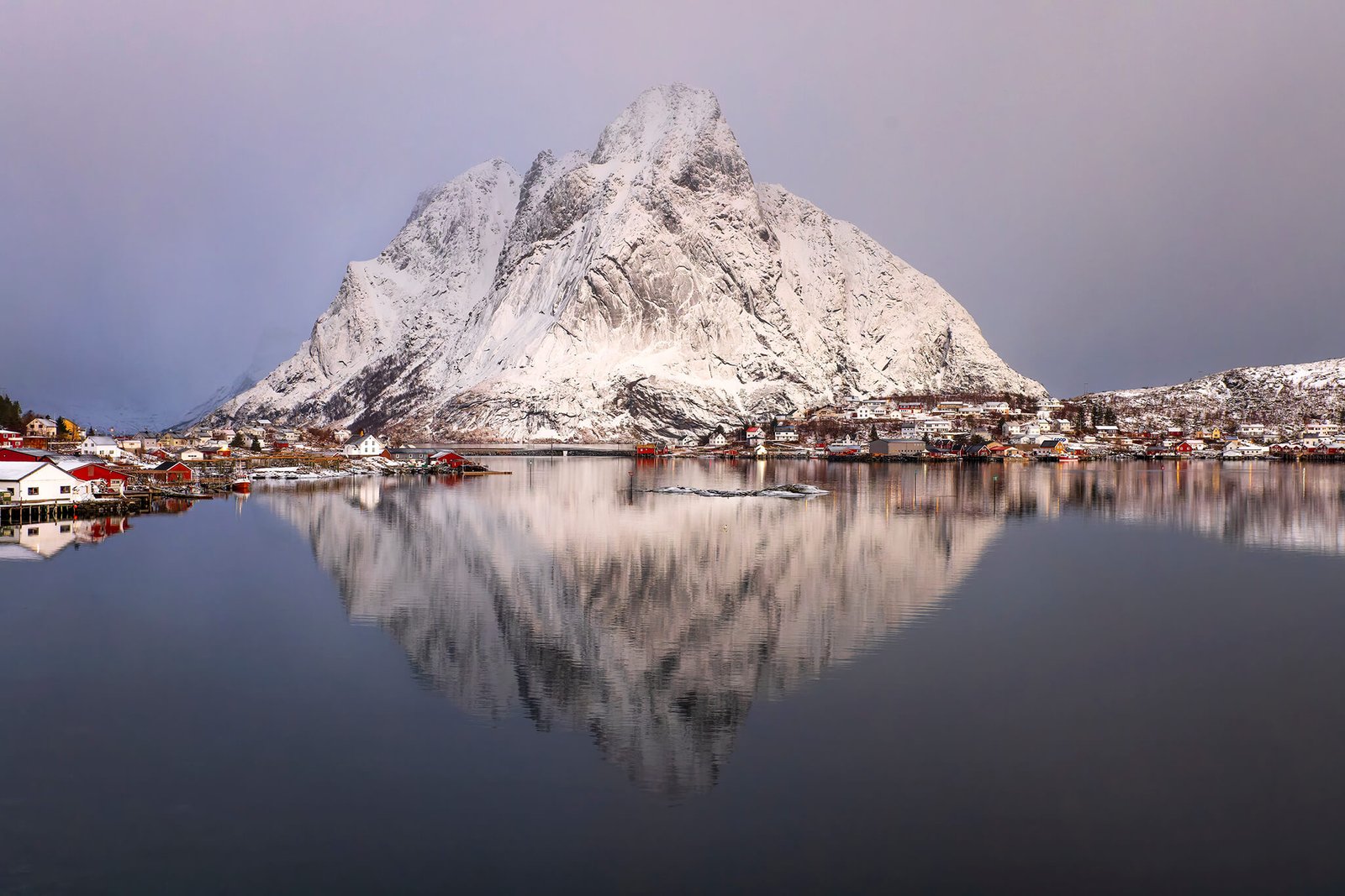 The Lofoten Islands stand among the world's premier destinations for dramatic mountain and seascape photography. During winter, this Arctic archipelago transforms into an extraordinary landscape where 3,000-foot peaks rise directly from the Norwegian Sea, their snow-covered summits creating breathtaking contrasts against dark waters and stormy skies.