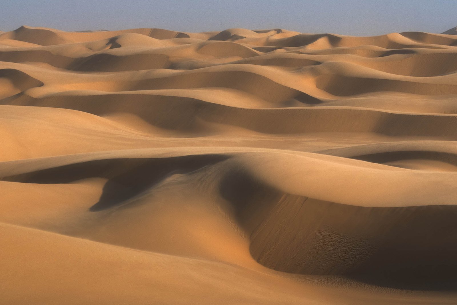 Capture the towering red sand dunes of Sossusvlei in the ancient Namib Desert, where some of the world's highest dunes create dramatic shadows and curves against endless blue skies.